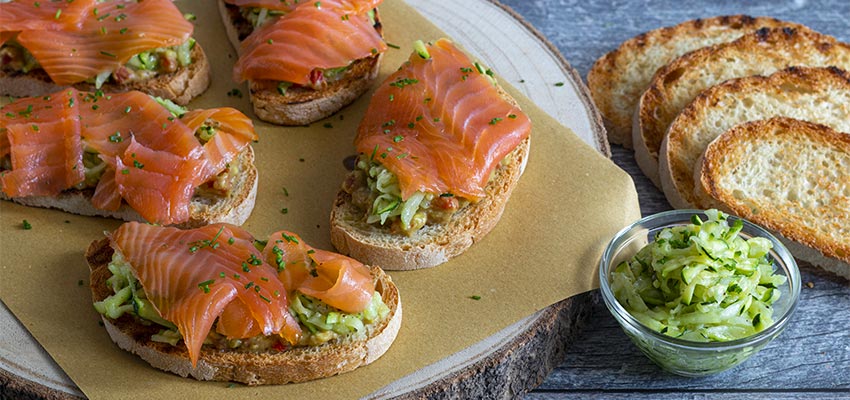 - bruschetta guacamole lime salmone affumicato cetrioli zucchine