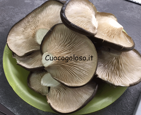 Prendiamo i funghi pleurotus e li separiamo, tagliamo via le radici e gli eventuali residui di paglia.