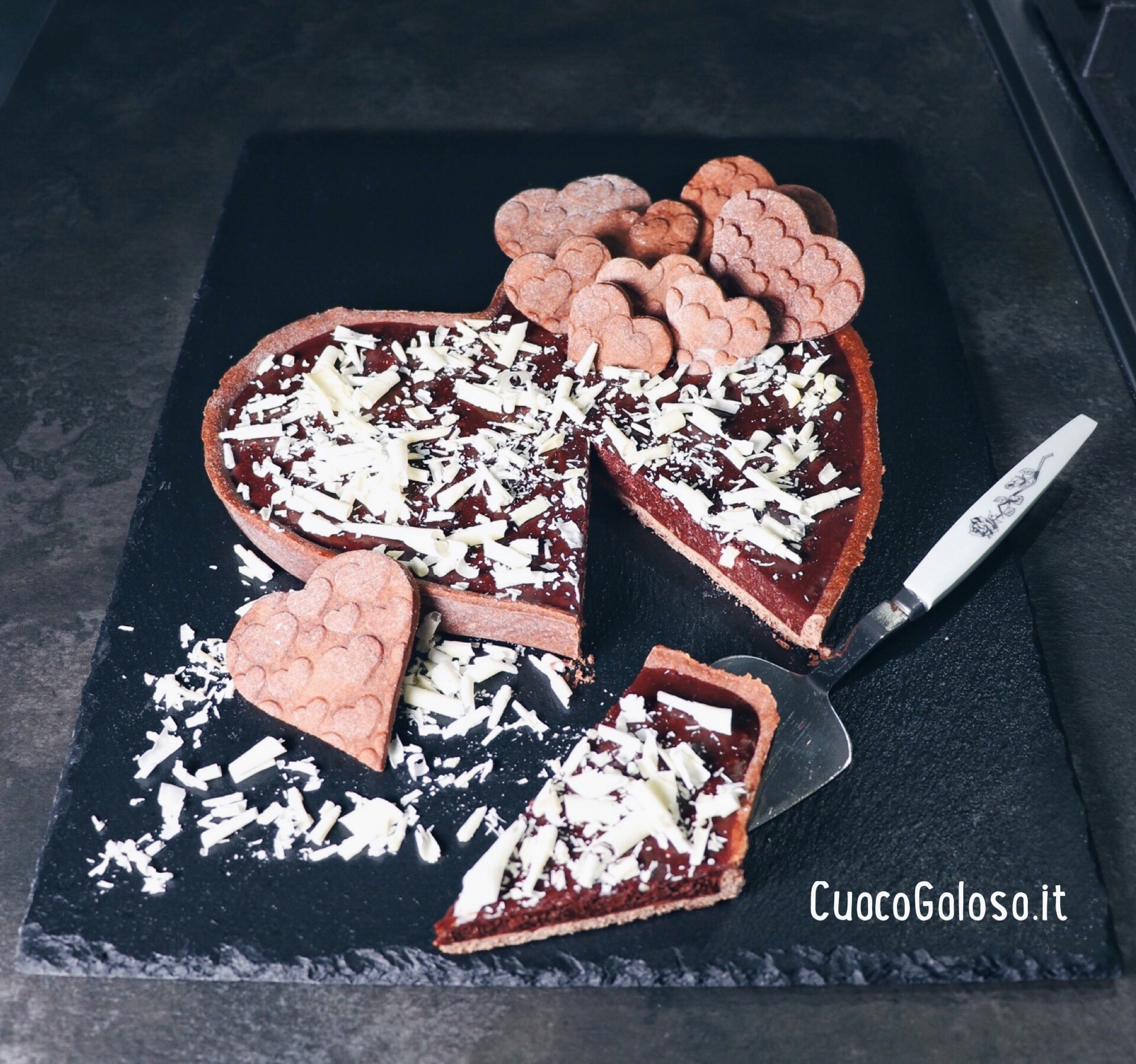 Questo dolce prende vita proprio in occasione del San Valentino, dove si festeggia e si manifesta l’amore verso la persona amata. Questa torta nasce per rappresentare il sentimento ma con un occhio alle calorie. Infatti il suo aspetto goloso, cremoso ed invogliante è accompagnato da un lato attento alla linea. La Crostata Prospettiva di Cuori è composta con una pasta frolla preparata senza ne burro ne olio ed il ripieno non è altro che una ganache preparata senza panna.