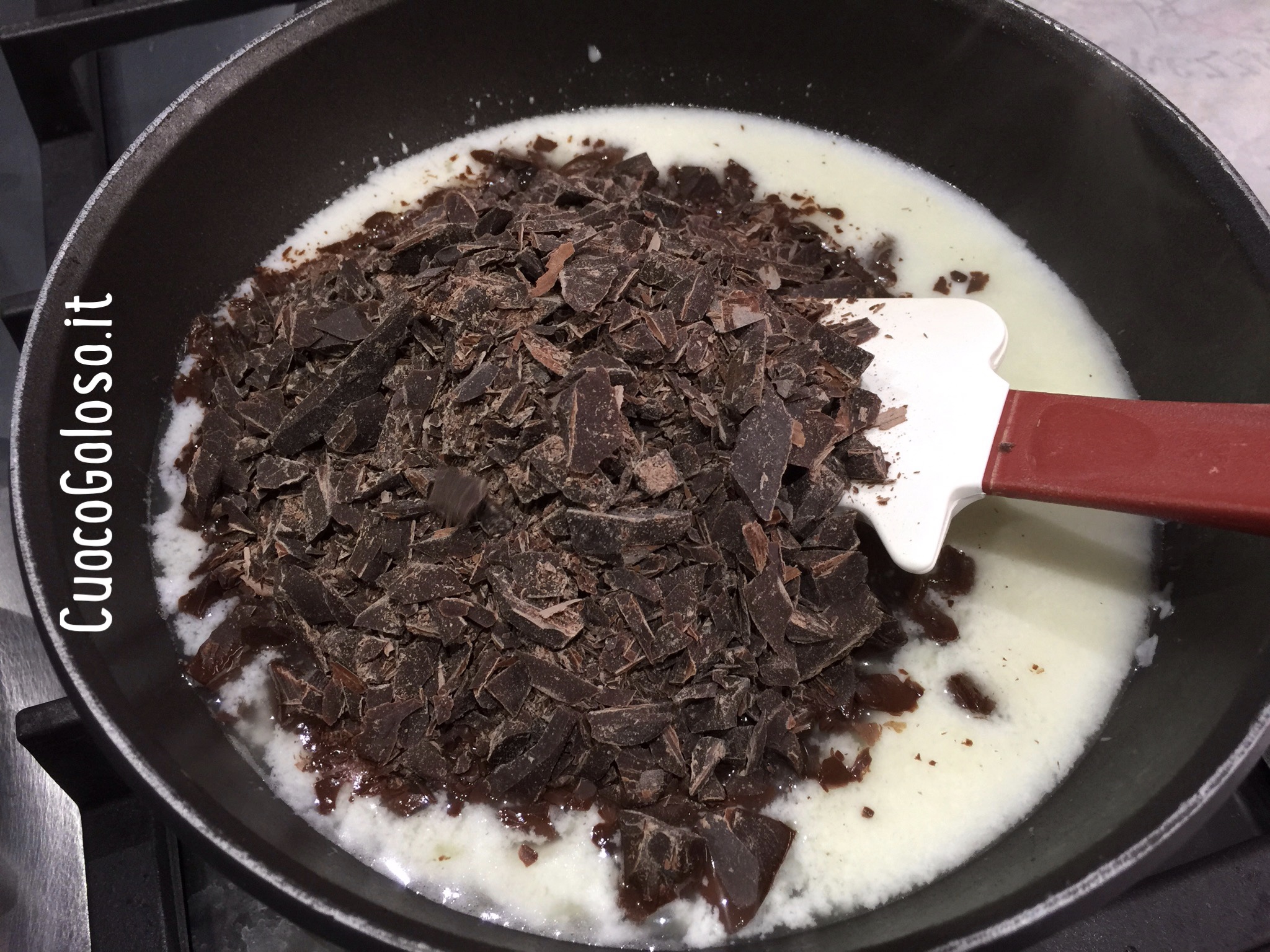 Nel frattempo prepariamo la crema.Versiamo in un pentolino lo yogurt e lo facciamo scaldare. Tritiamo il cioccolato. Aggiungiamo allo yogurt il burro ed il miele e facciamo sciogliere, uniamo il cioccolato e facciamo fondere ed amalgamare il tutto. Può capitare che lo yogurt faccia una specie di grumi, non vi preoccupate, non appena il cioccolato sarà sciolto vi basterà dare qualche colpetto di frullatore ad immersione per omogeneizzare il tutto.