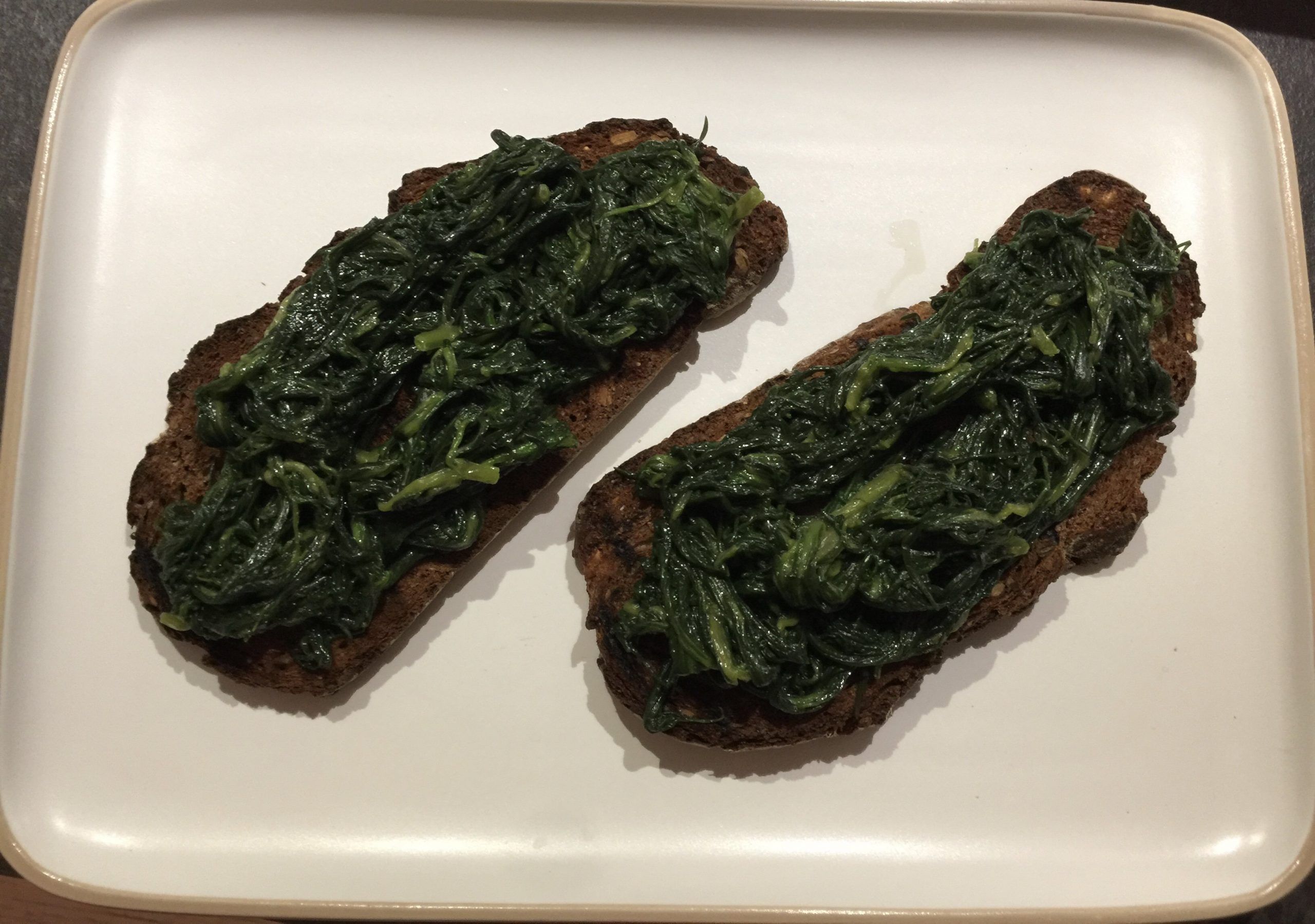 Crostone con Agretti, Uovo Pochè e Germogli di Ravanello Rosso
