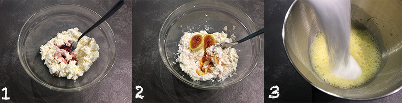 - In una ciotola lavoriamo la ricotta con qualche goccia di sciroppo dei fichi caramellati.