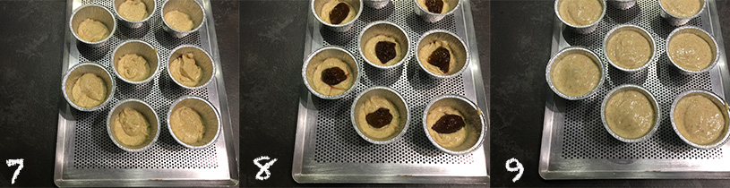 - Mettiamo al centro di ogni muffin crudo i fichi caramellati