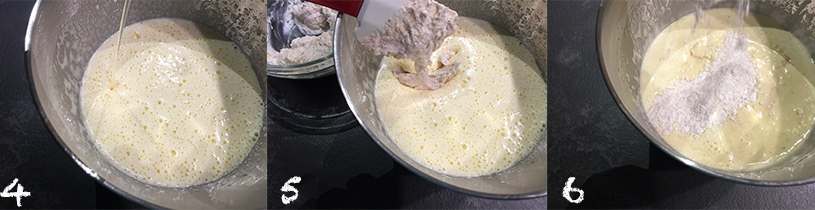- Versiamo la farina ed il lievito, facciamo amalgamare bene