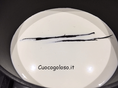 Mettiamo il latte in un pentolino con la mezza stecca di vaniglia alla quale avrete estratto i semi.