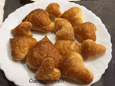 Durante la cottura i nostri cuori di sfoglia si gonfieranno e prenderanno colore.