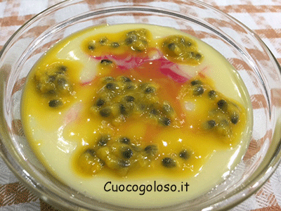 L’altra metà di frutto della passione dovrete lavorarlo direttamente nel suo guscio che servirà da ciotolina.