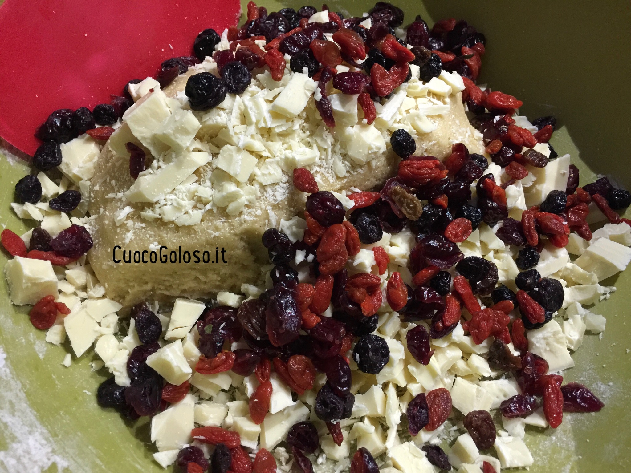 - biscotti tozzetti cioccolato bianco frutti rossi bacche di Goji
